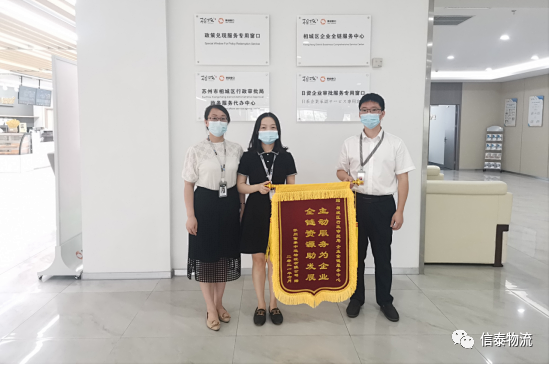 7月30日上午,蘇州信泰中運物流有限公司負責人向相城區行政審批局企業全鏈服務中心送去了一面寫有“主動服務為企業,全鏈資源助發展”的錦旗,感謝相城區行政審批局為我司解決融資等問題。